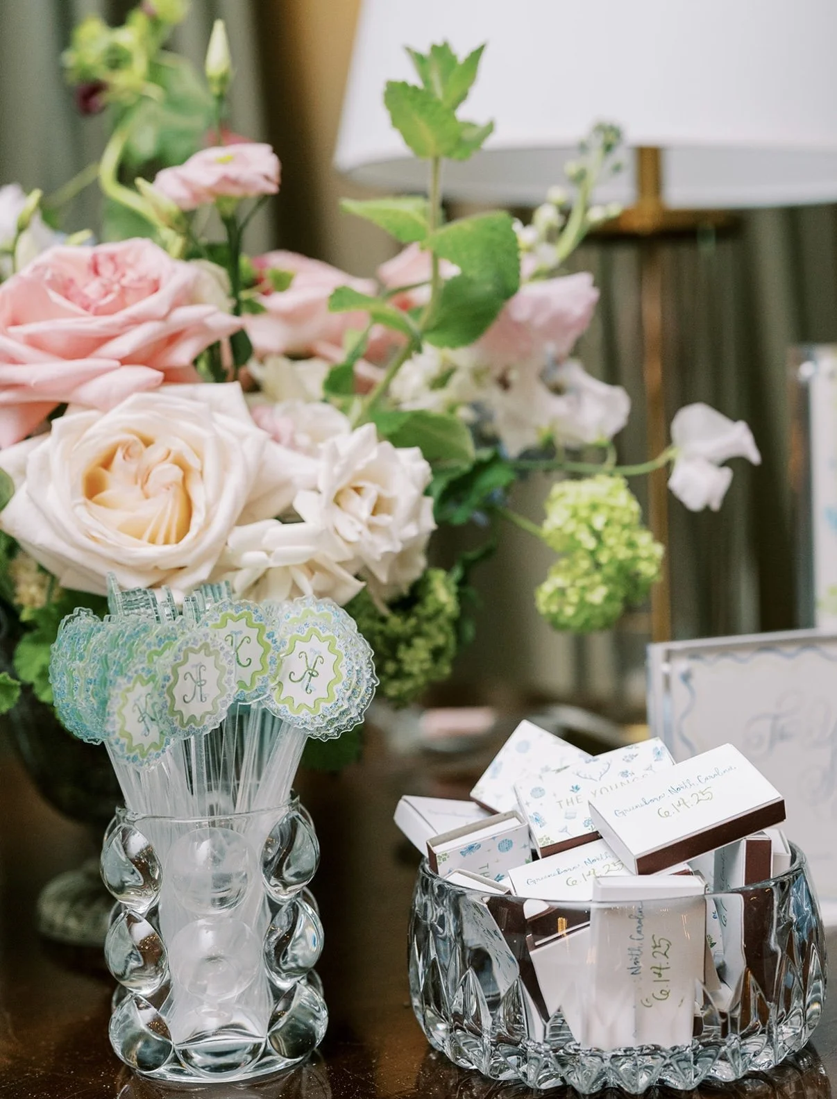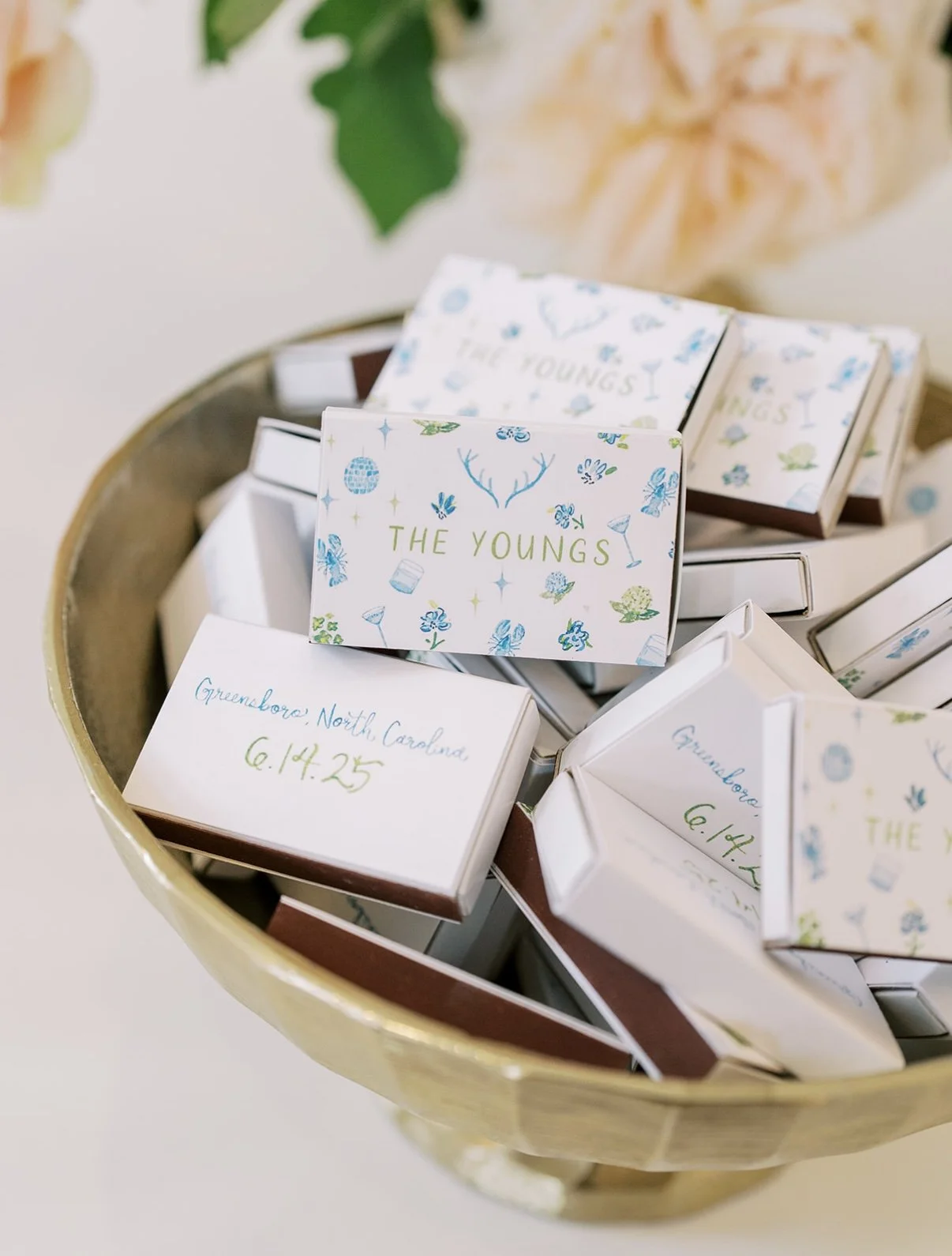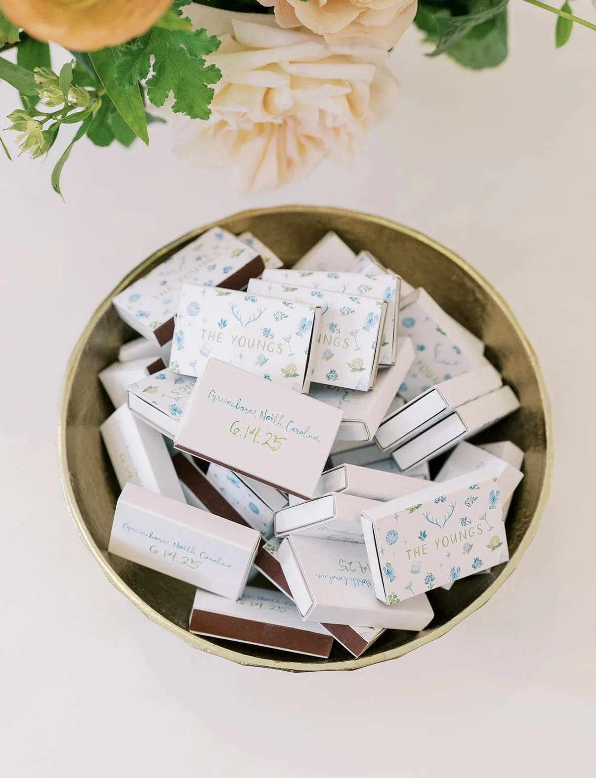 The matchbooks also incorporated the envelope liner’s playful iconography, paired with “Jordan + Kemp” hand-painted calligraphy, making them a charming, personal keepsake for guests.