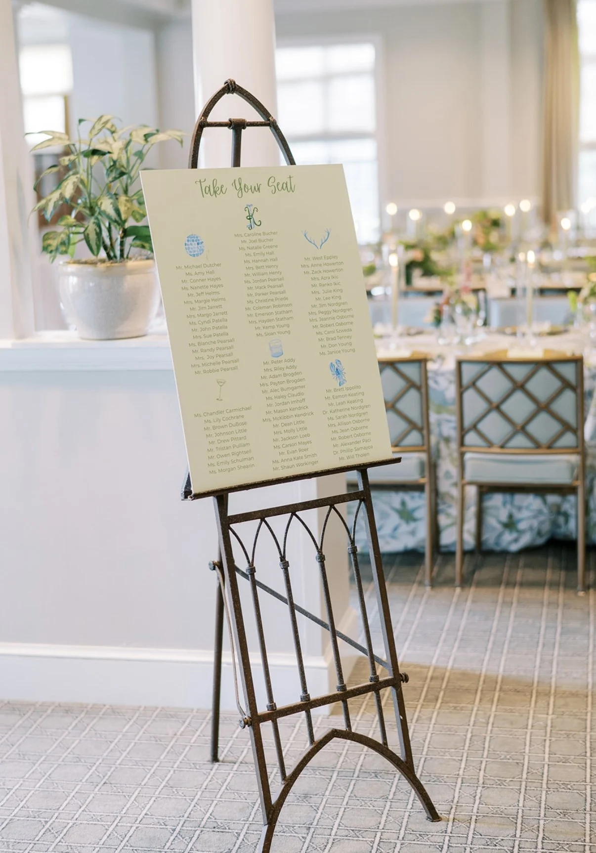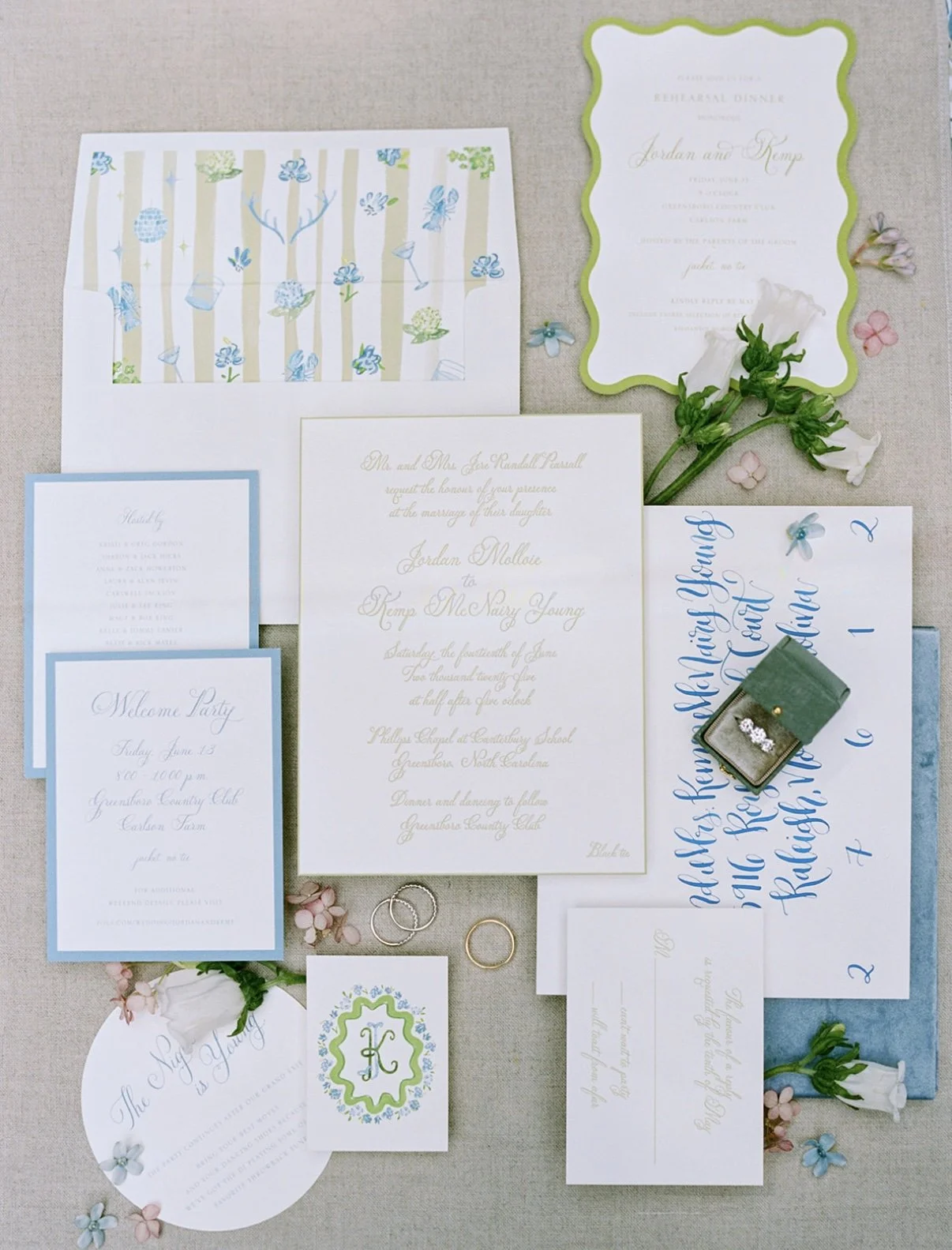 The envelope liner was full of charm and personality, featuring a collection of custom icons representing the couple. From antlers honoring Kemp’s love of hunting to an espresso martini celebrating Jordan’s favorite drink, each illustration offered guests a playful glimpse into what makes them unique.