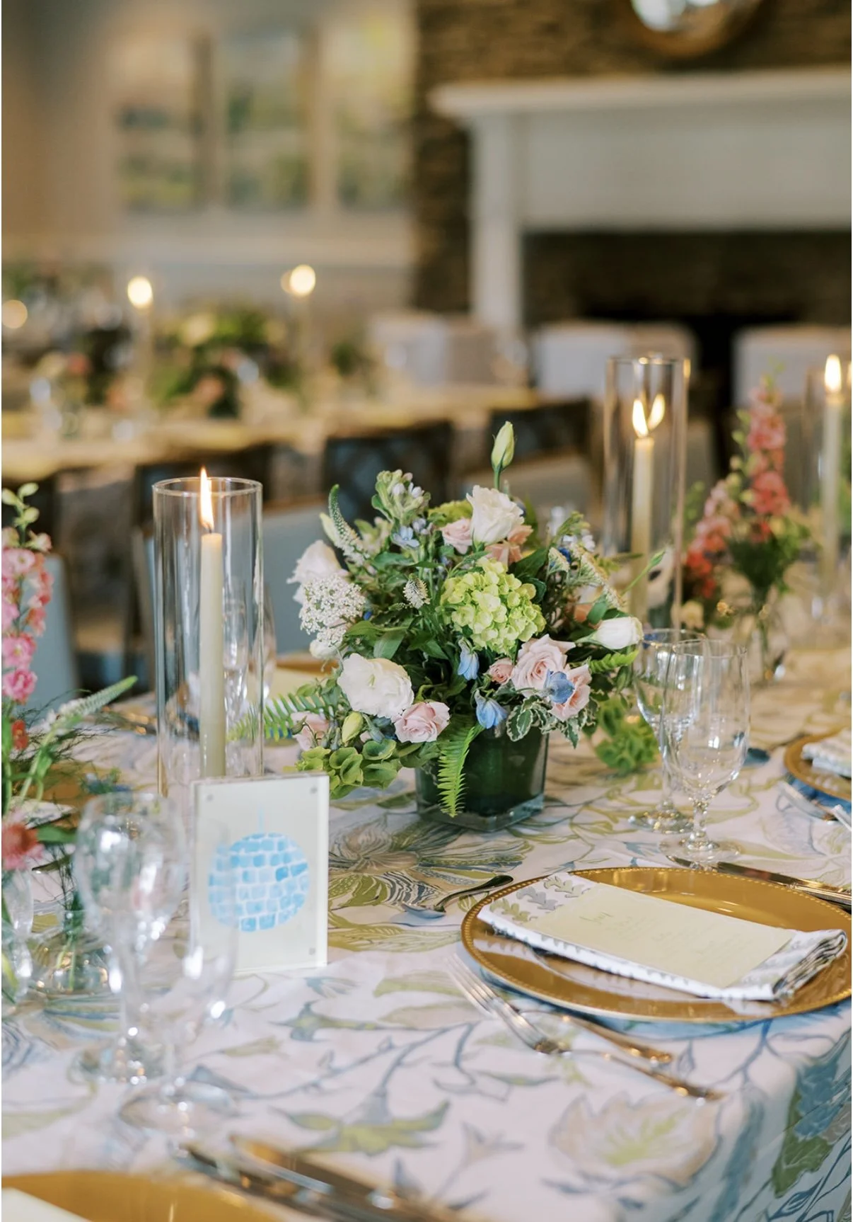 Even the rehearsal dinner received a personal touch with bespoke table placement art. These pieces were not only functional but also served as keepsakes that highlighted the couple’s attention to detail and love for artful design.
